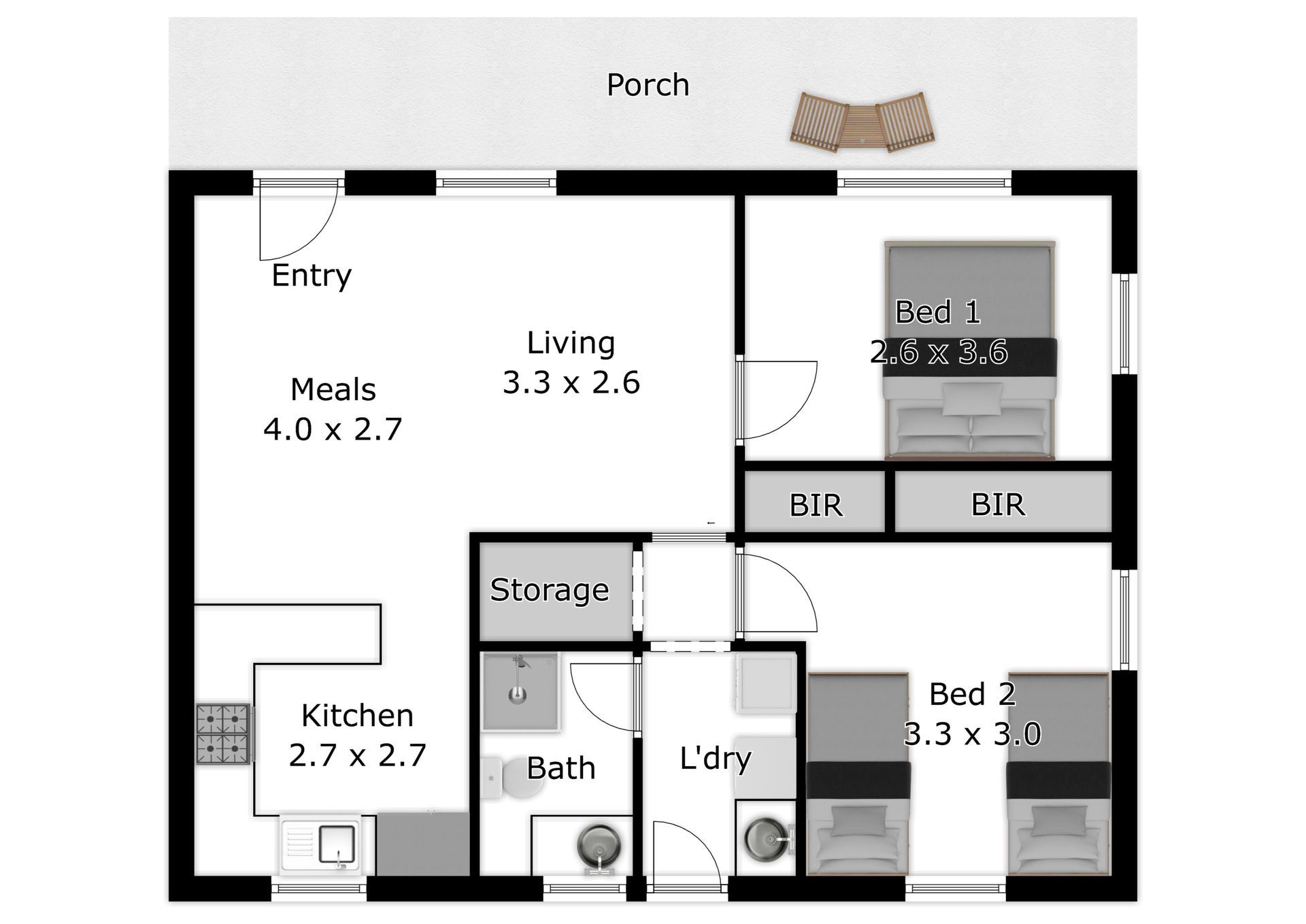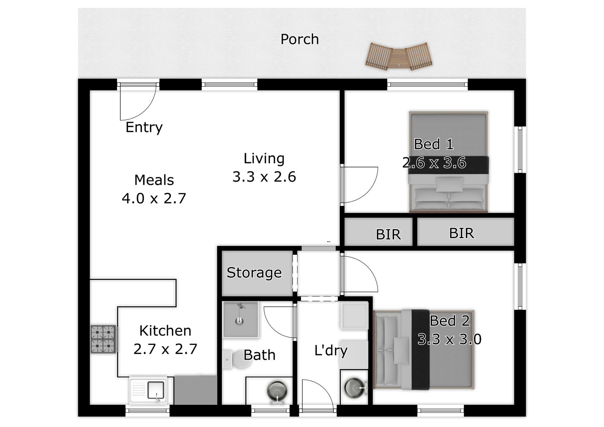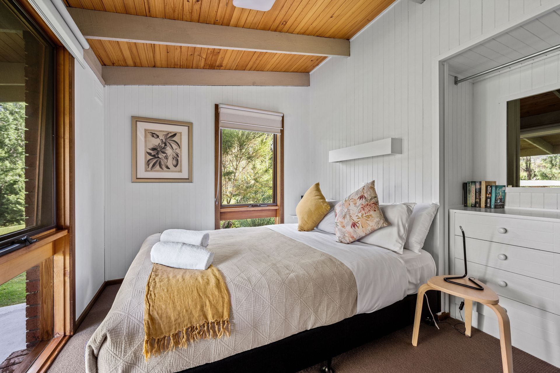 This cottage has a queen bed in the main bedroom, the 2nd bedroom also has a queen bed and sleeps a maximum of 4 x guests.