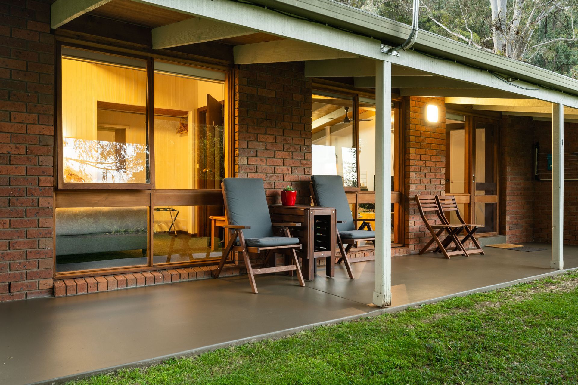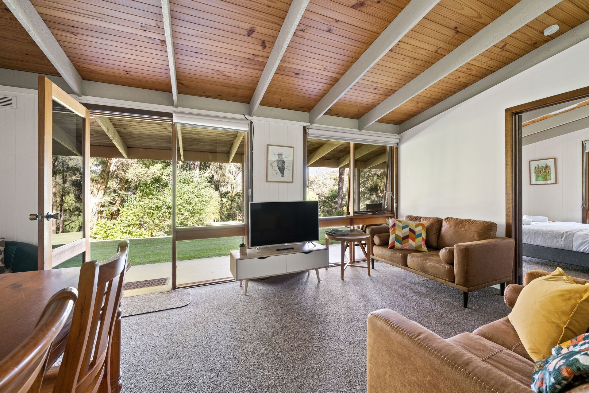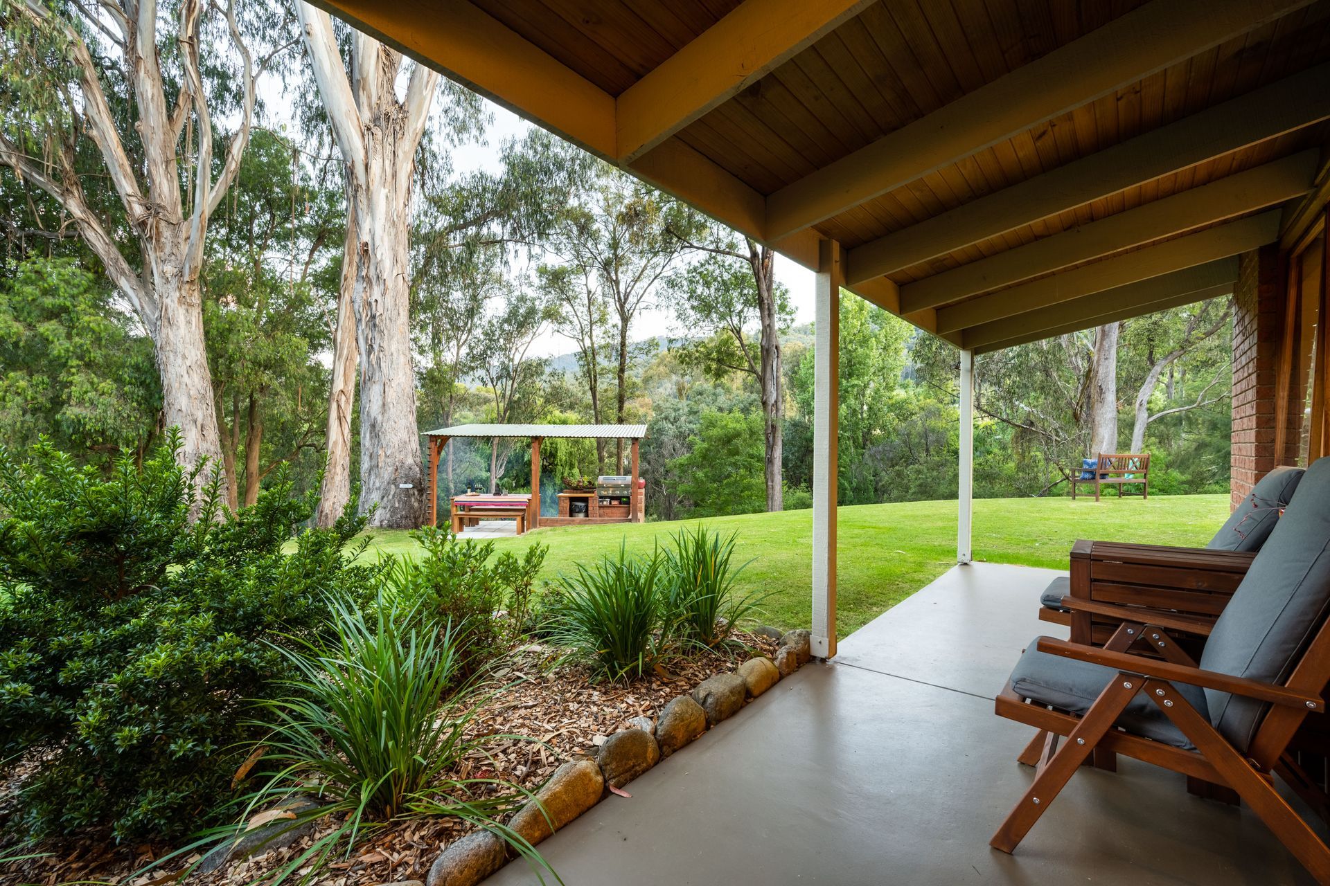 Discretely set on 3 acres of natural bushland, towering eucalypts and stunning gardens with a pristine alpine stream flowing along the base of the property, each cottage has a unique and stunning view.