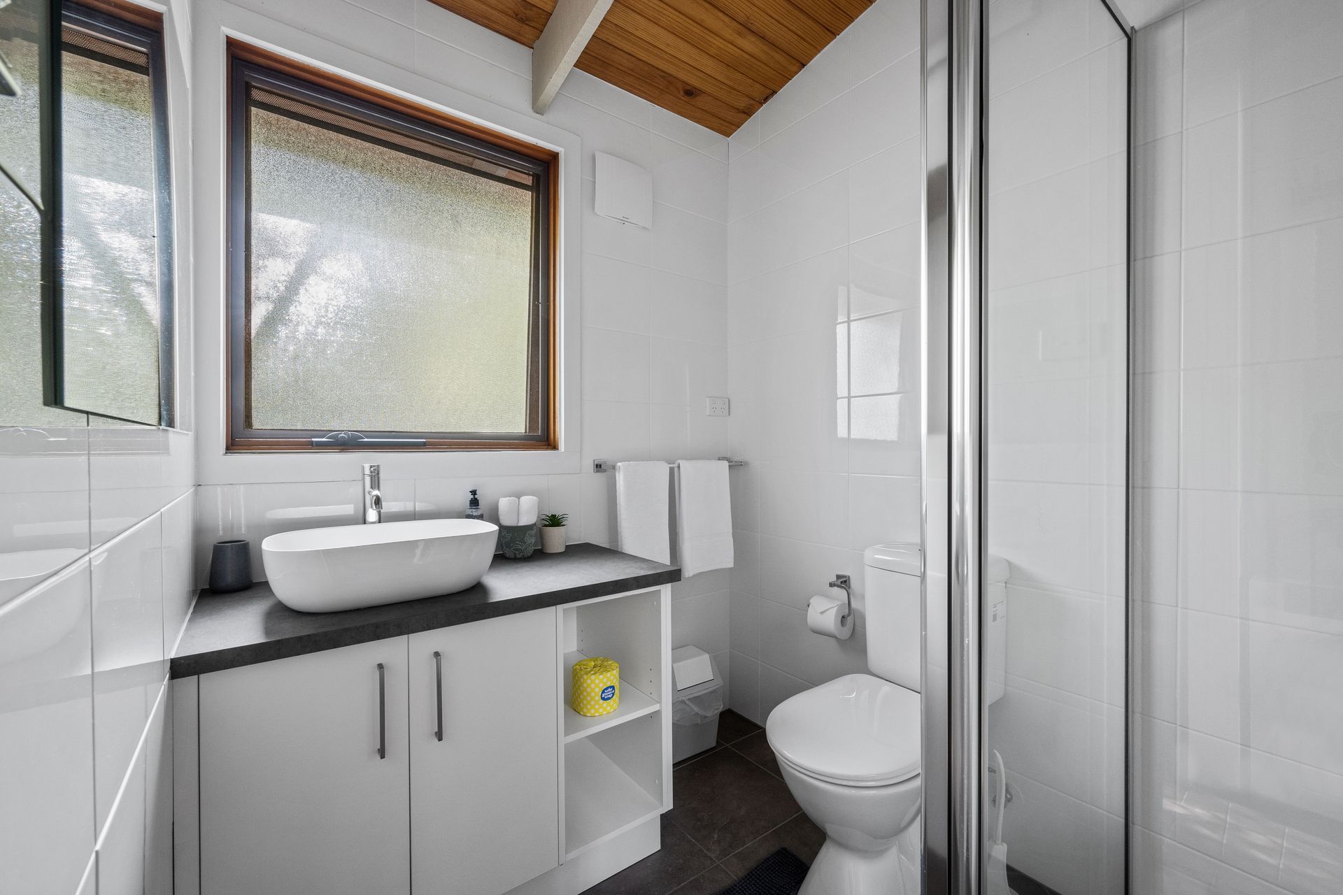 - Bathroom with shower, hair dryer, towels and complimentary toiletries (we use zero waste soaps, shampoo and conditioner).