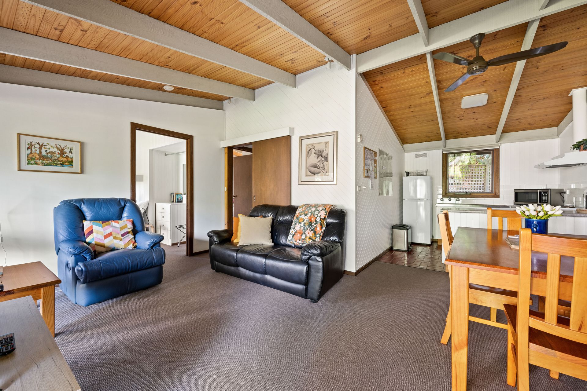 - Free parking (not undercover) Access to the Cottages is down a short path and 3 steps.