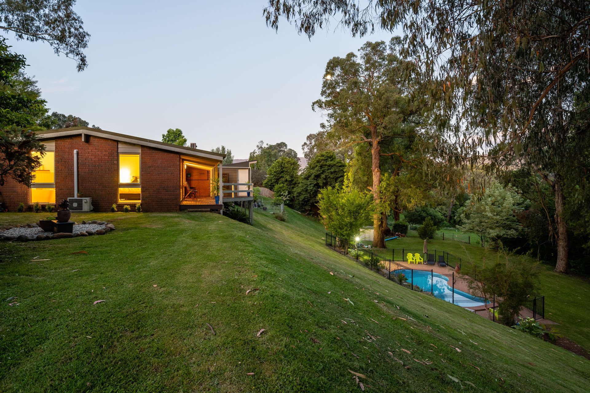 - All set amongst 3 acres of relaxing native gardens with an outdoor swimming pool, abundant bird life and a pristine alpine stream at the bottom of the property.